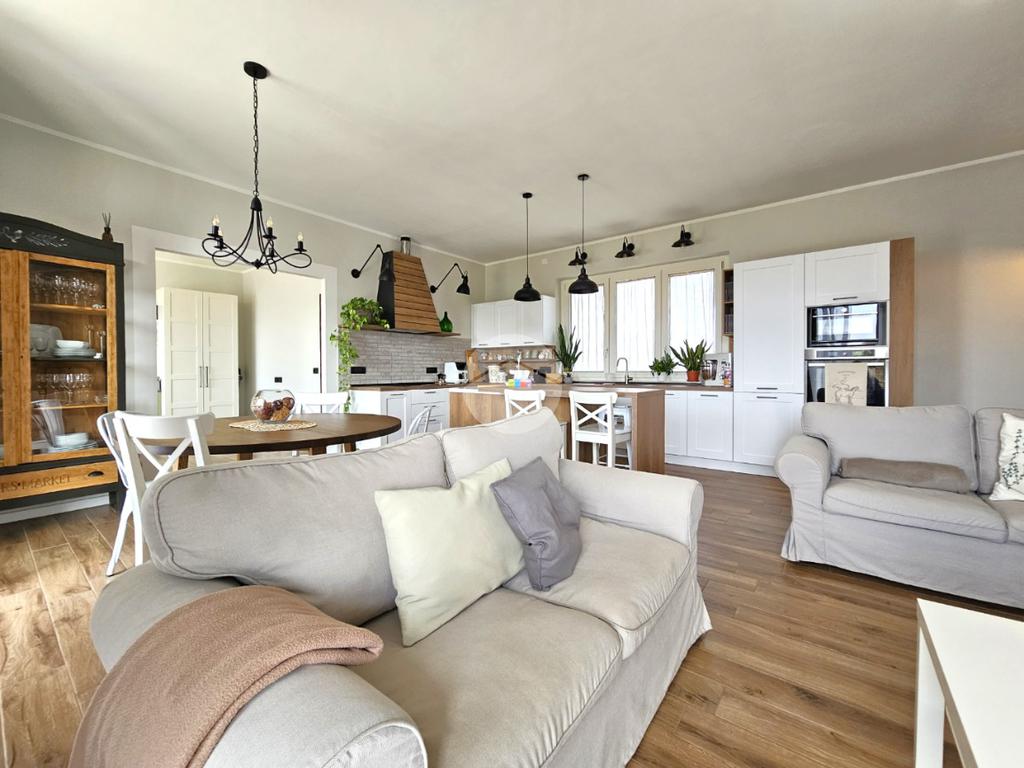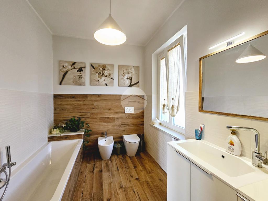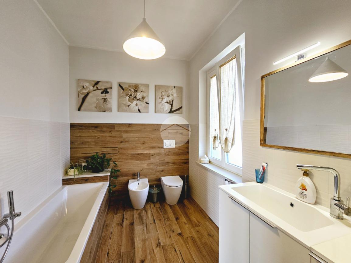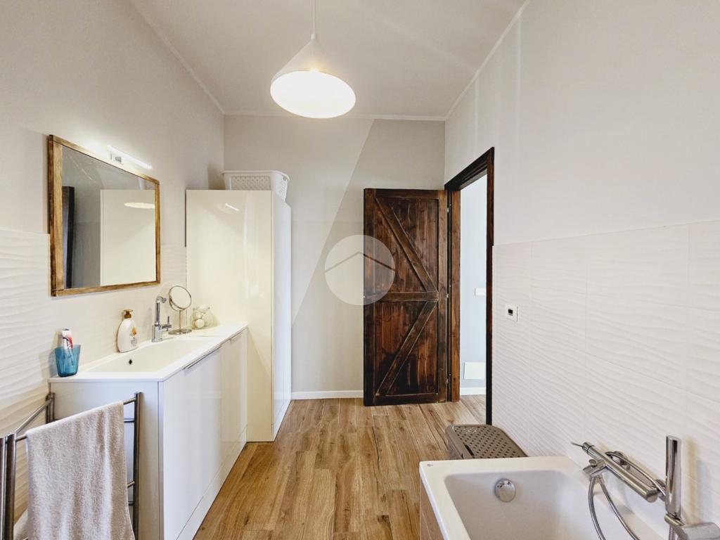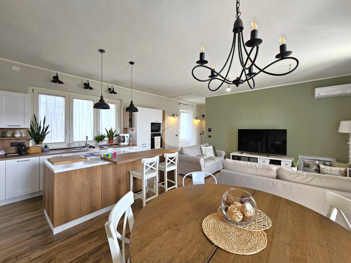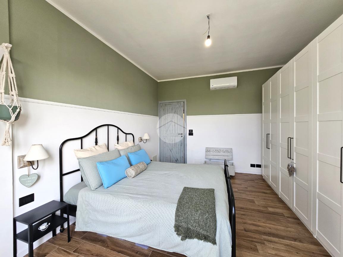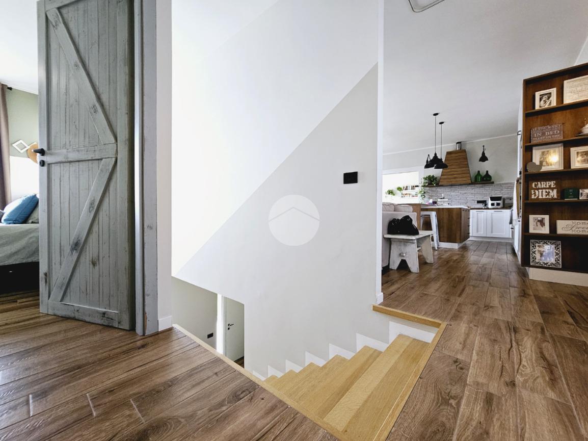 MAZZE' - Frazione Tonengo: Casa indipendente completamente ristrutturata con giardino privato. L'abitazione si sviluppa su due livelli collegati tramite scala interna per un totale di 165 mq. calpestabili. Al piano terra: ingresso mediante portoncino blindato e accesso al disimpegno spazioso dal quale si accede a due stanze ad uso soggiorno, studio e zona relax. Sullo stesso livello sono presenti un bagno di servizio, dotato di doccia con attacco per la lavatrice e il vano tecnico nel quale sono state installate la caldaia e la pompa di calore per l'acqua calda sanitaria. Il piano superiore è costituito da una zona giorno di 45 mq. con cucina a vista, due camere da letto e due bagni spaziosi dotati di vasca e doccia. Tutte le stanze hanno lo sfogo esterno sul balcone. Gli infissi della casa sono in pvc, effetto legno con doppi vetri e zanzariere. Il riscaldamento è a pavimento su entrambi i livelli, alimentato a metano e ogni stanza dispone di termostato autonomo. Inoltre la casa dispone di climatizzatori caldo/freddo, predisposizione dell'antifurto, videocitofono con controllo da remoto, canna fumaria in acciaio e predisposizione per pannelli fotovoltaici. La proprietà è stata recentemente oggetto di completa e totale ristrutturazione, con stato di fatto attuale pari al nuovo. All'interno delle opere eseguite è stato realizzato anche l'insufflaggio nelle pareti per l'isolamento termico. L'unità immobiliare viene completata da una tettoia esterna di 12 mq. e da un box auto doppio di 30 mq. dotato di portone sezionale. La buona distribuzione degli ambienti interni consente ulteriori personalizzazioni ai fini di sfruttare al meglio tutti gli spazi presenti.