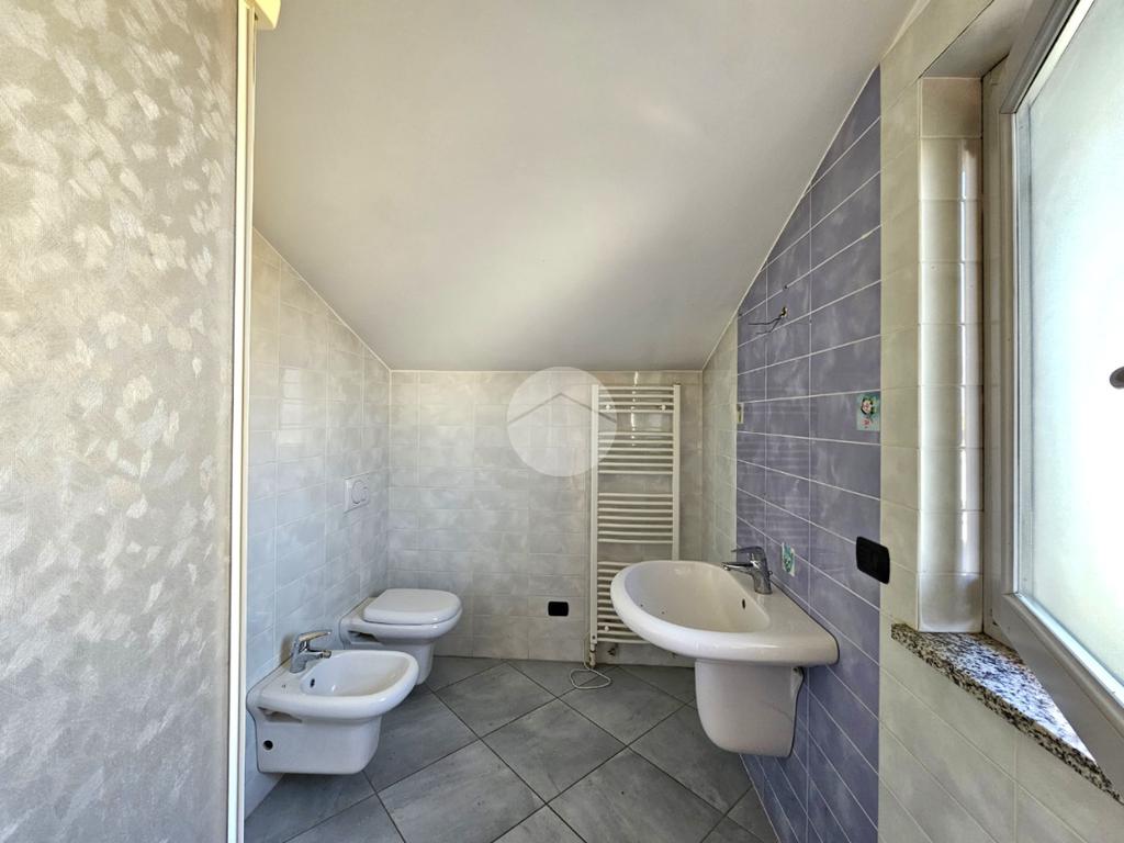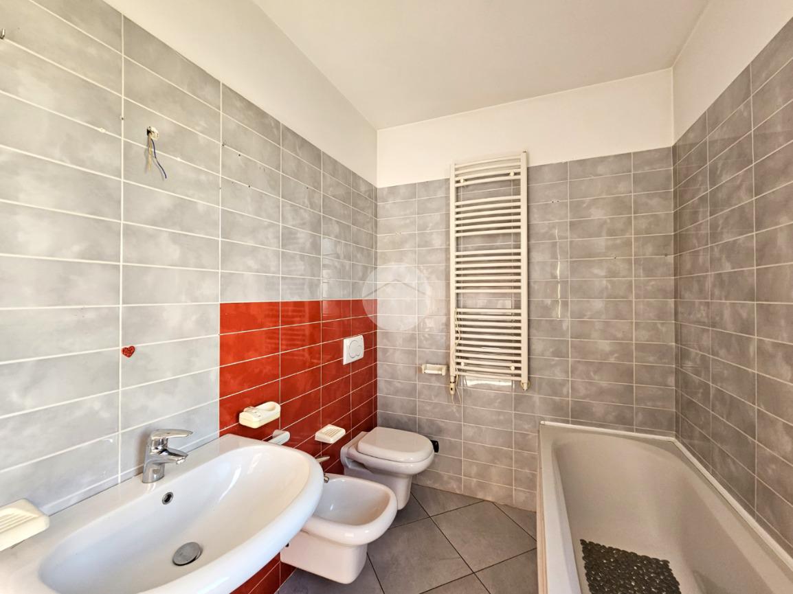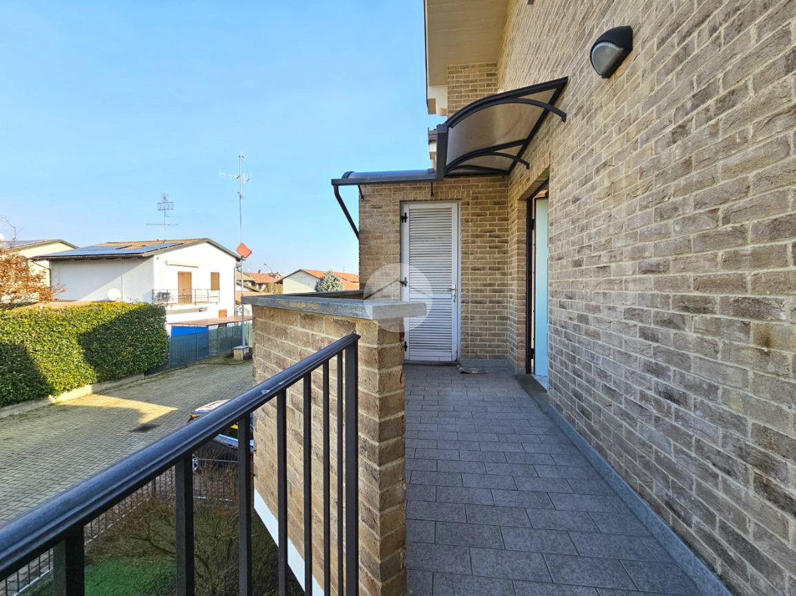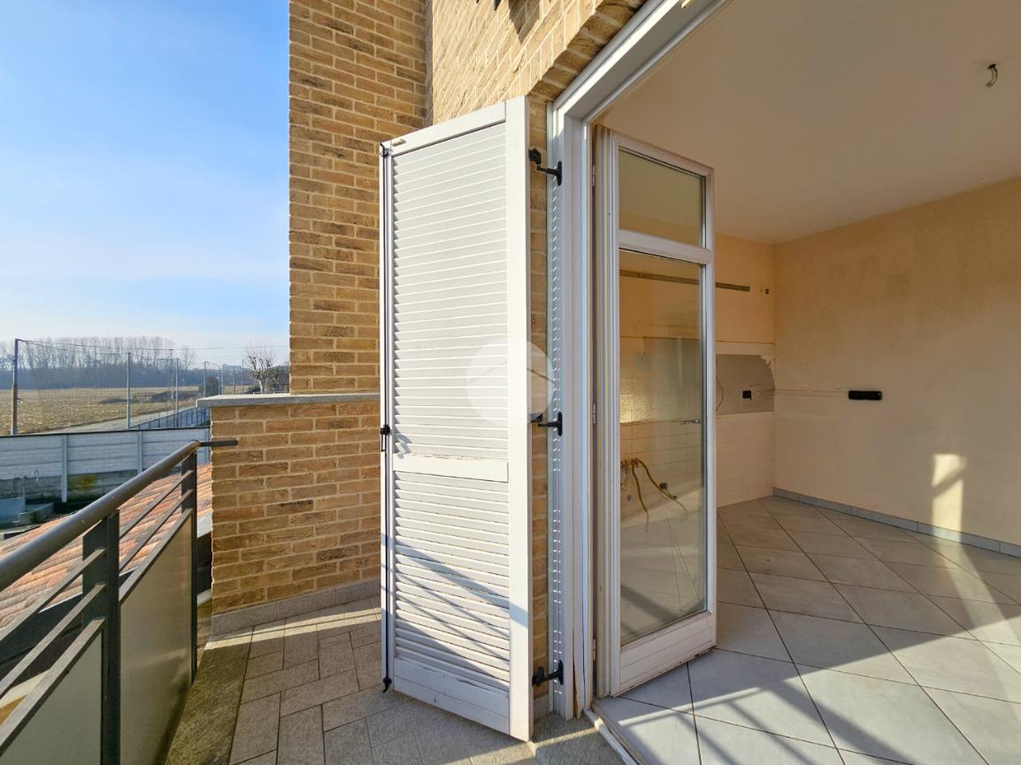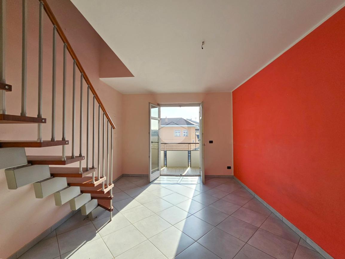 RONDISSONE: Alloggio al piano primo disposto su due livelli in complesso di recente costruzione. Ingresso su soggiorno con sfogo esterno sul balcone, cucina abitabile e bagno con vasca. Tramite una scala interna si raggiunge il piano superiore, mansardato, costituito da due camere e da un secondo bagno con doccia. Tutti gli infissi sono in legno con doppi vetri, gelosie e oscuranti. Il riscaldamento è autonomo, a pavimento, alimentato a metano con basse spese di gestione. L'appartamento inoltre dispone di predisposizione per i climatizzatori. Ottima la posizione che rende gli ambienti ben soleggiati. Completa l'unità immobiliare un comodo box auto di 18 mq, piastrellato con punto acqua interno e basculante elettrico.