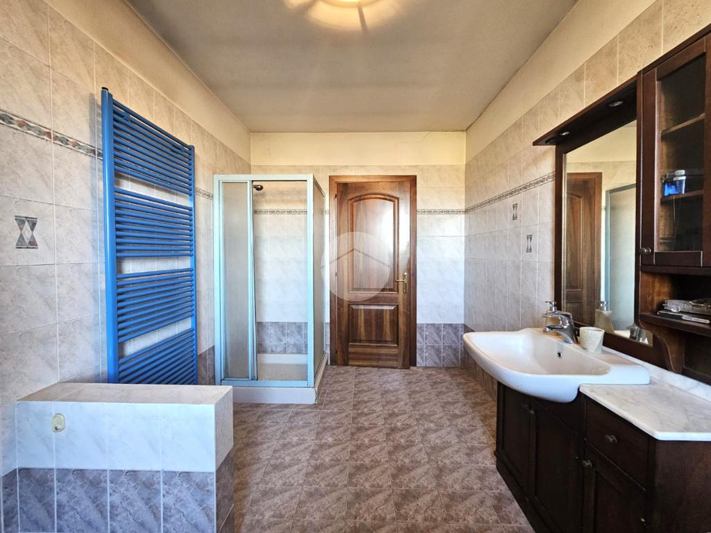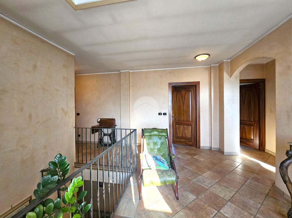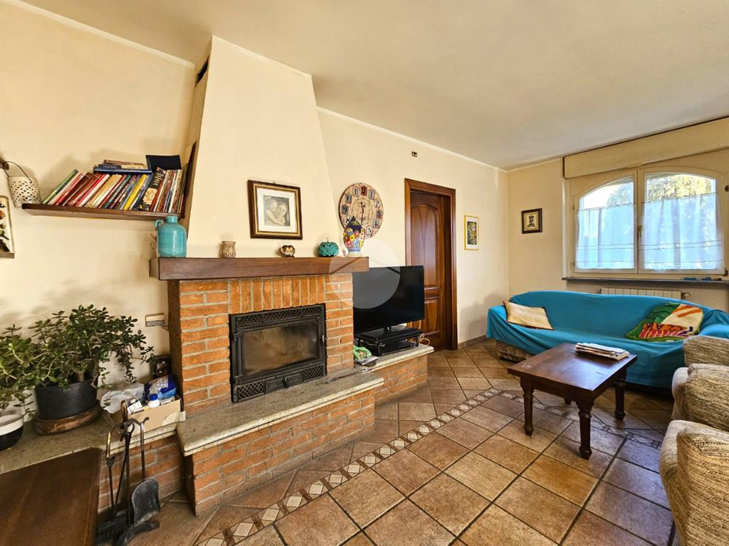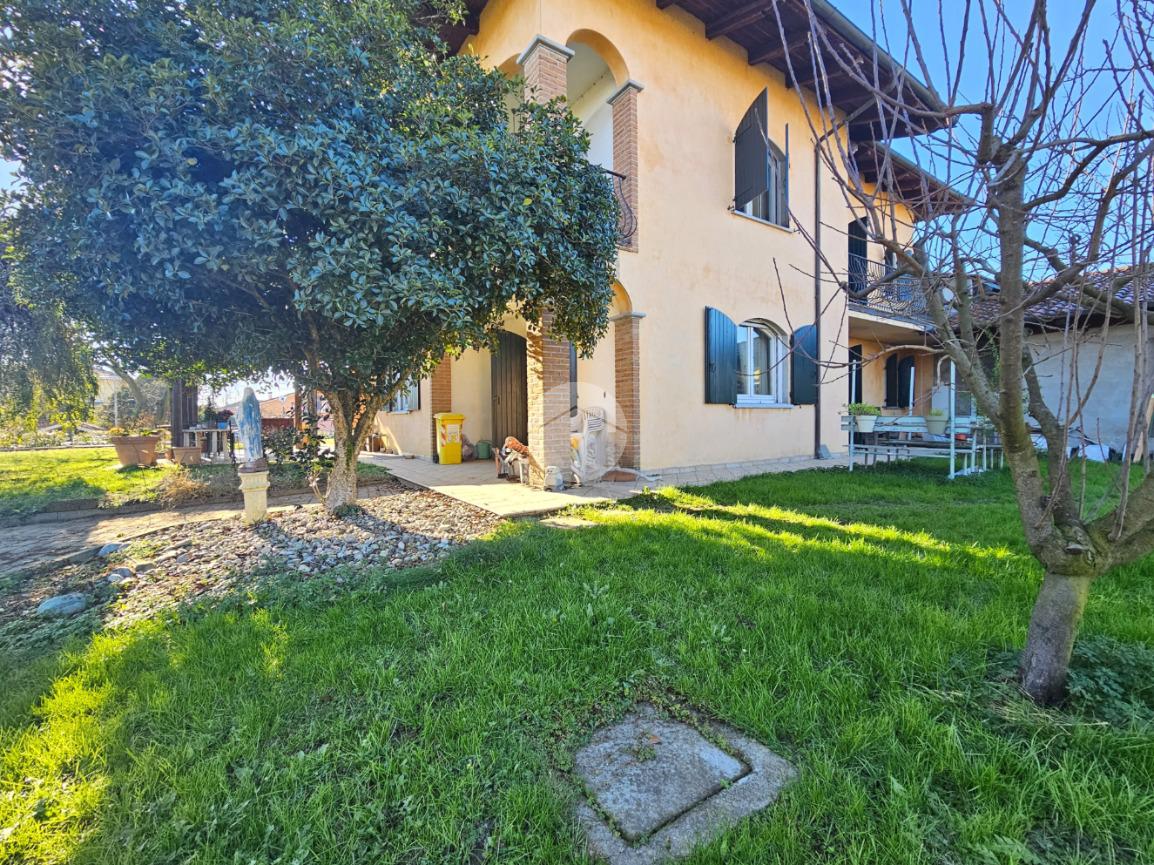 TORRAZZA: Villa indipendente costruita nell'anno 1998, dotata di ampio giardino privato di circa 1.200 mq. L'abitazione si sviluppa su tre livelli per un totale di 470 mq. interni calpestabili. La buona distribuzione degli ambienti e la posizione della scala consentono di ricavare due alloggi con ingressi indipendenti. Il piano terra di 170 mq. dispone di ampia cucina abitabile con camino a legna, doppio soggiorno, due camere, due bagni spaziosi e una cabina armadio. Il piano superiore di 95 mq. è costituito da tre camere da letto con balcone e due bagni. Sullo stesso livello è presente la botola per l'ispezione del tetto. Il piano interrato di 200 mq. è composto da una tavernetta con camino a legna, una cantina, un locale di deposito, una lavanderia, il locale caldaia e un box auto collegato internamente di 80 mq. Tutti gli infissi sono in legno con doppi vetri, oscuranti e tapparelle in ferro elettriche. E' presente la predispozione per climatizzatori e antifurto. Inoltre la proprietà è dotata di pannelli fotovolatici da 20 Kw con batterie di accumulo. Riscaldamento a metano con caldaia a condensazione. L'ampia metratura interna ed esterna si adatta e si presta a diverse soluzioni abitative e personali.
