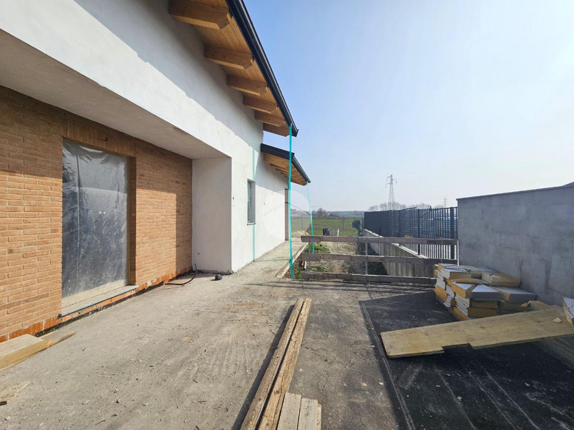 TORRAZZA PIEMONTE: Villa di nuova costruzione, libera su quattro lati con giardino privato. L'immobile si sviluppa su tre livelli con una superficie calpestabile interna di 260 mq. Il piano terra di 90 mq è costituito da ingresso su ampio soggiorno con cucina abitabile. Dal disimpegno si accede alla zona notte composta da due camere da letto, delle quali una con cabina armadio, un bagno dotato di attacchi per doccia e vasca e un comodo ripostiglio. Tutte le stanze hanno lo sfogo esterno sul portico che circonda la casa. Tramite una scala interna si raggiunge il piano superiore, sottotetto di 70 mq nel quale sono presenti due stanze con servizio e un ripostiglio. Completa l'abitazione il piano interrato di 60 mq con accesso su ampia tavernetta dotata di canna fumaria per l'utilizzo di stufa; una comoda lavanderia con vano tecnico e accesso diretto al box auto di 34 mq. con cantina separata e portico coperto di 20 mq. Il riscalmento è a pavimento al piano terra e al piano primo con doppio termostato, alimentato con caldaia ibrida a metano. Inoltre la casa dispone di panneli solari e fotovoltaici. Tutti gli infissi sono in pvc con persiane in alluminio. La copertura del tetto è stata realizzata con tegole in cemento. L'immobile viene consegnato con le caratteristiche sopra elencate e con la disposizione degli ambienti interni come indicato in descrizione; eventuali variazioni interne ed esterne verrano concordate con l'impresa costruttrice in fase di trattativa. Per ulteriori informazioni inerenti la proprietà e tutte le carattestiche tecniche e di finitura potete rivolgervi alla Tecnorete di Rondissone.
